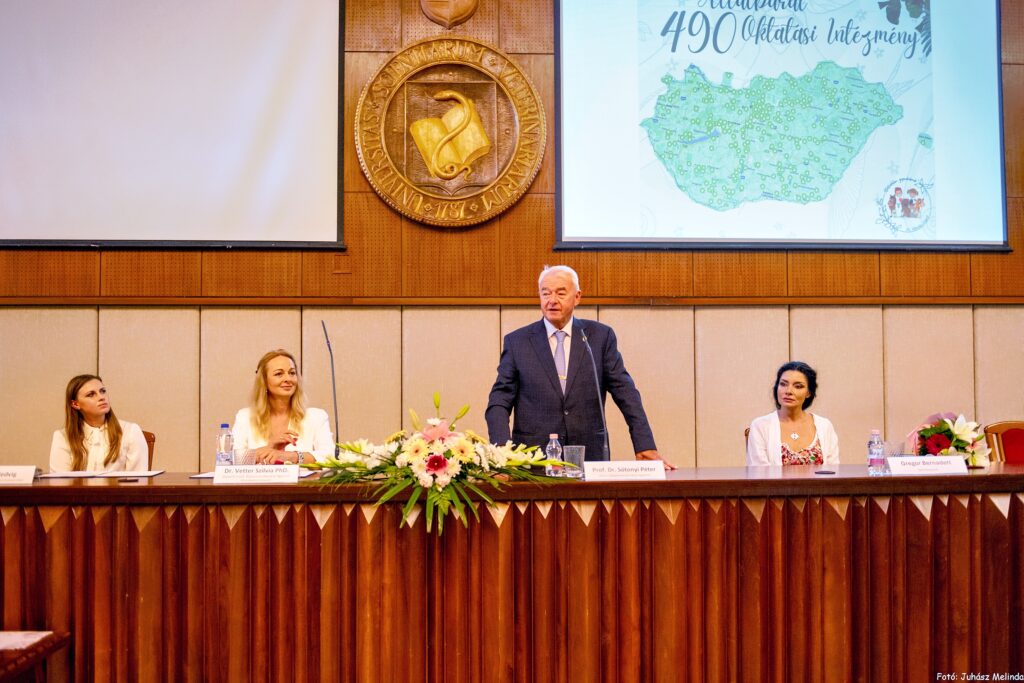 Sótonyi Péter, az Állatorvostudományi Egyetem rektora adta át az „Év Állatvédő -, Bölcsődéje, Óvodája, Általános iskolája, Középiskolája, Gyógypedagógiai Intézménye és Gyermekotthona 2024” pályázatok dobogósainak okleveleit az Egyetemen megrendezett díjátadó ünnepségen, június 18-án és 19-én, Budapesten. Az „Állatvédelem gyerekeknek” szerkesztőbizottsága az Állatorvostudományi Egyetem Állatvédelmi, Jogi, Elemző- és Módszertani Központjának szakmai támogatásával már negyedik alkalommal hirdette meg az állatvédő és állatbarát címek elnyerését célzó pályázatát az oktatási intézmények számára. Idén először két határon túli, egy erdélyi és egy szlovákiai magyar oktatási intézmény is elnyerte a címet.