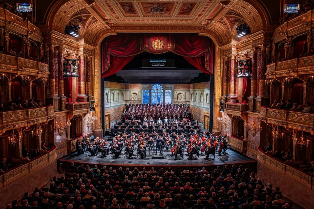Az Operaház újévi koncertjén Beethoven az Örömódát is tartalmazó 9. szimfóniája mellett a szerző ugyancsak népszerű István király nyitánya is elhangzik a jeles alkalomból. A hétperces művet Beethoven a mai budapesti Vörösmarty téren 1812-ben átadott pesti Német Színház megnyitójára komponálta, August von Kotzebue István király, Magyarhon első jótevője című darabjának kisérőzenéjeként. Ezt követően Kodály Zoltán Ének Szent István királyhoz című himnusza szólal meg, amelyet a szerző az államalapító király halálának 1000. évfordulójára komponált 1938-ban. Az ötperces kórusmű az Ah, hol vagy, magyarok tündöklő csillaga kezdetű katolikus népének feldolgozása Kodály saját dallamával. Az újévi hangversenyen ünnepi beszédet mond Freund Tamás Széchenyi-díjas neurobiológus, a Magyar Tudományos Akadémia elnöke, aki feleségével a Kodály-kórusműben is közreműködik. A koncerten, amit 2026. január 17-én is műsorra tűz az Andrássy úti Ybl palota, a Magyar Állami Operaház Zenekarát és Énekkarát Cser Ádám vezényli, a 9. szimfónia szólistái Horti Lilla, Schöck Atala, Kovácsházi István és Cser Krisztián.