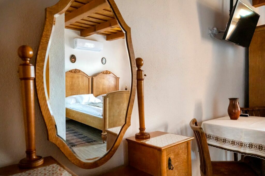 A csodásan restaurált paraszti bútorok, a bájos fali gobelinek, a házi áldás kézimunkák és a régmúlt idők kisebb-nagyobb használati tárgyai nemes egyszerűséggel keverednek itt a napelemek, az okos tévék, a légkondik és a wifi modern világával. Az apró részletek szépsége és a jó stílusérzék kreativitása azonnal magára vonja a tekintetet, a tökéletes kényelmet pedig a minőségi ágymatracok, a minden igényt kielégítő fürdőszoba nyújtja. A hófehérre meszelt, korhű zsalugáteres ablakokkal felszerelt falusi ház szépen gondozott kertje színes virágokkal, zöld gyeppel és kényelmes ülő bútorokkal csábít ejtőzésre a harapnivalóan friss vidéki levegőn, igazi feltöltődést nyújtva testnek és léleknek.