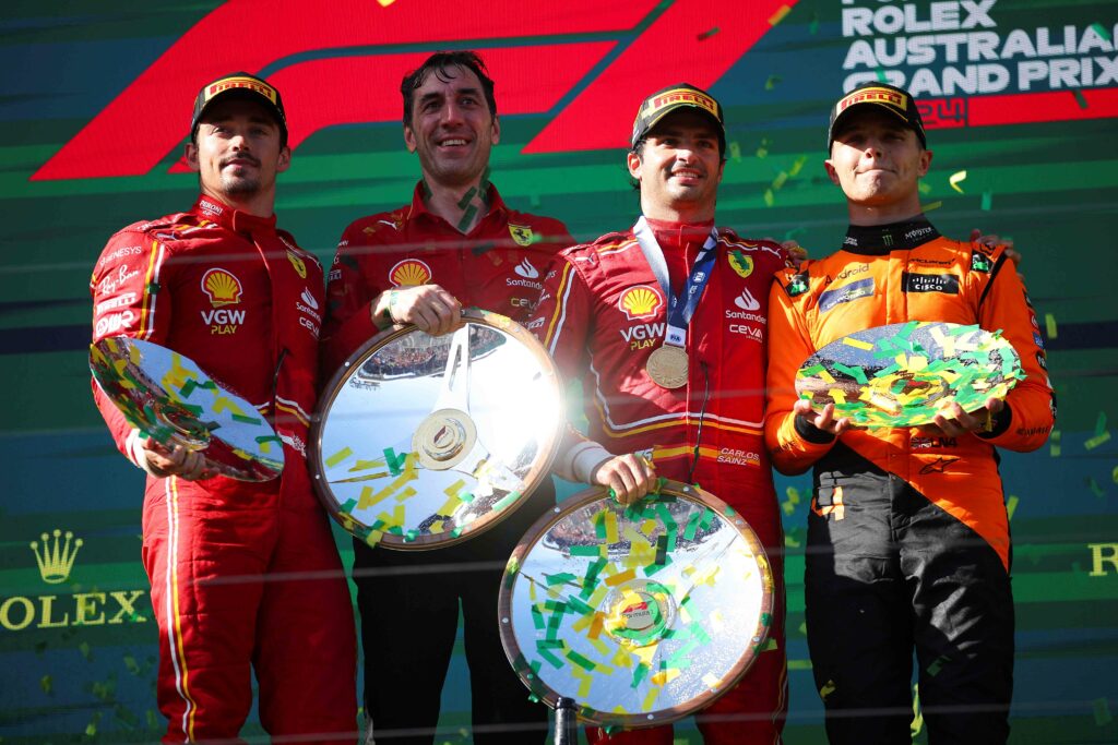 S mi történt az Ausztrál Nagydíjon tavaly? Kettős Ferrari-győzelem született, ahol a vakbélműtétjéből felépülő Carlos Sainz állhatott a dobogó legfelső fokára. A második helyezett Charles Leclerc mögött Lando Norris gurult célba harmadikként. Ez a pozíciót a brit pilóta csapattársának köszönhette, aki csapatutasításra helyet cserélt vele.