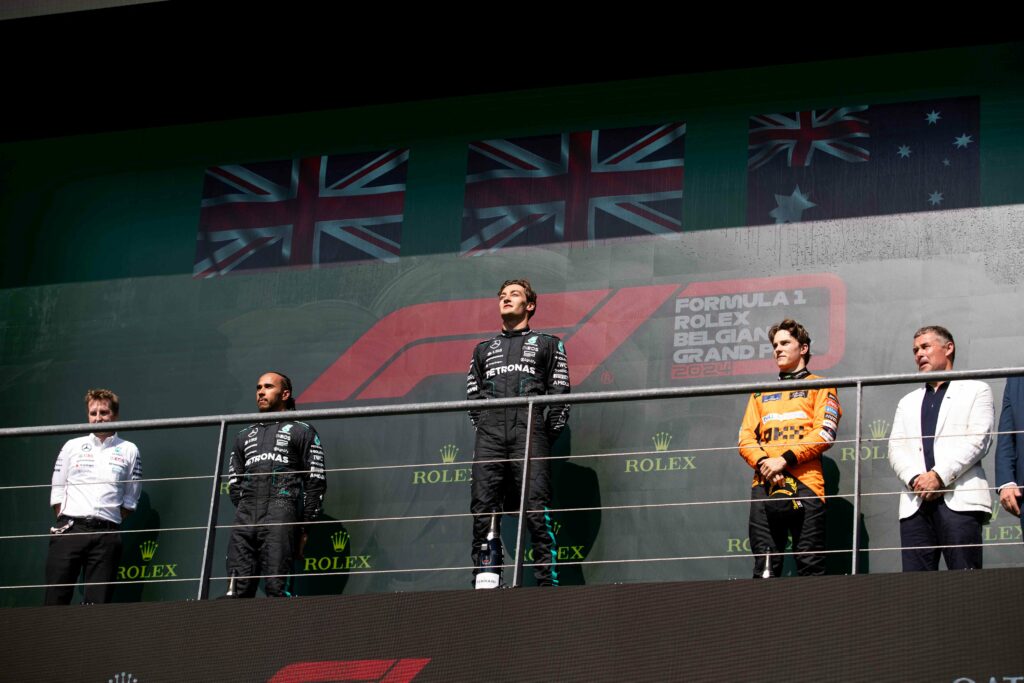 Míg Magyarországon a McLaren párosa mutatott erős teljesítményt, addig Spában a staféta a Mercedeshez került. A brackley istálló párosa nagy csatát vívott a belga győztes trófeáért. Oscar Piastri is beszállt a csatába, szorosan követve az Ezüst Nyilakat a célig. George Russell Ausztria után ismét felállhatott a dobogó legfelső fokára. Lewis Hamilton végig a nyomában haladva ért célba a második helyen. A bronzérmes helyezés a magyarországi győztesé, Oscar Piastrié lett.