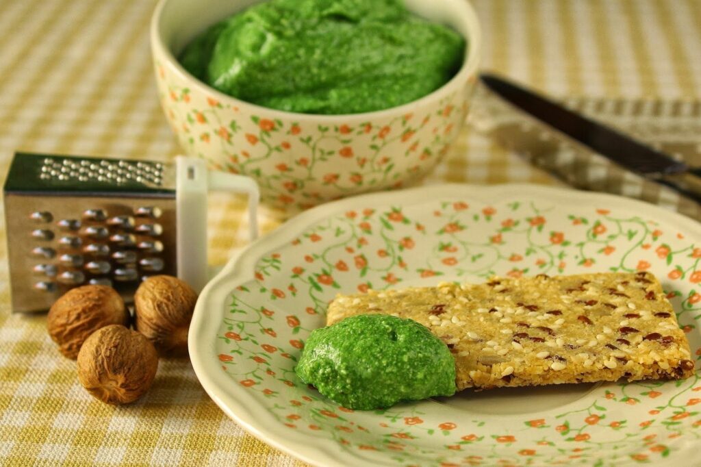 Forrásban lévő vízben a spenótot a szódabikarbónával és kevés sóval addig főzzük, amíg a levelek összeesnek (kb. 2 perc). Az összes hozzávalót turmixgépbe vagy késes aprítóba téve pürésítjük. Bármelyik „egészségesebb” rágcsa jól illik hozzá. Sonkával, főtt tojással tálalva komplett reggeli, tízórai vagy vacsora részévé válhat.