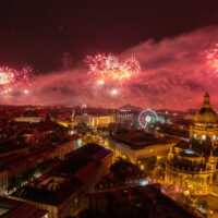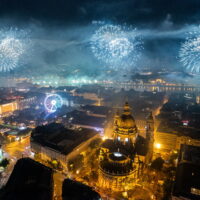 - Budapest, 2024. augusztus 20. A drónnal készült felvételen tûzijáték Budapesten az államalapítás és államalapító Szent István király ünnepén 2024. augusztus 20-án. Az elõtérben a Szent István-bazilika látható. MTI/Máthé Zoltán