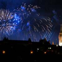 - Budapest, 2024. augusztus 20. Tûzijáték Budapesten az államalapítás és államalapító Szent István király ünnepén 2024. augusztus 20-án. Az elõtérben a Mátyás-templom. MTI/Purger Tamás