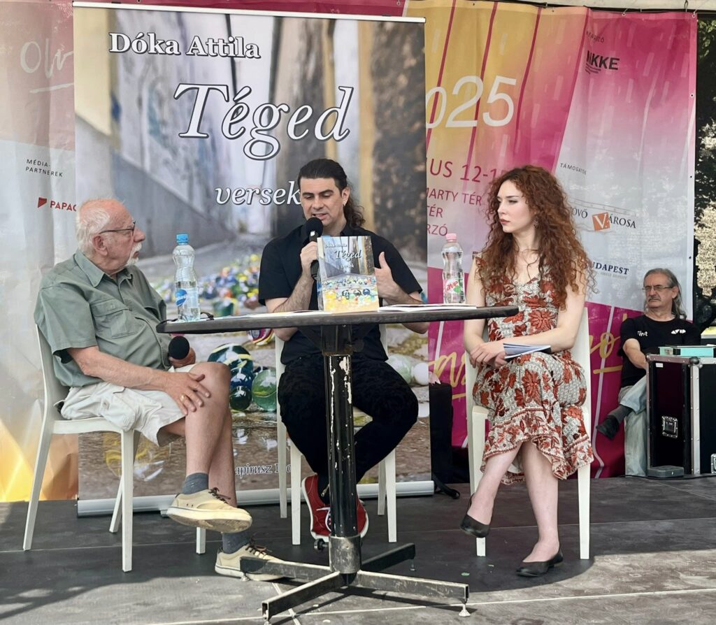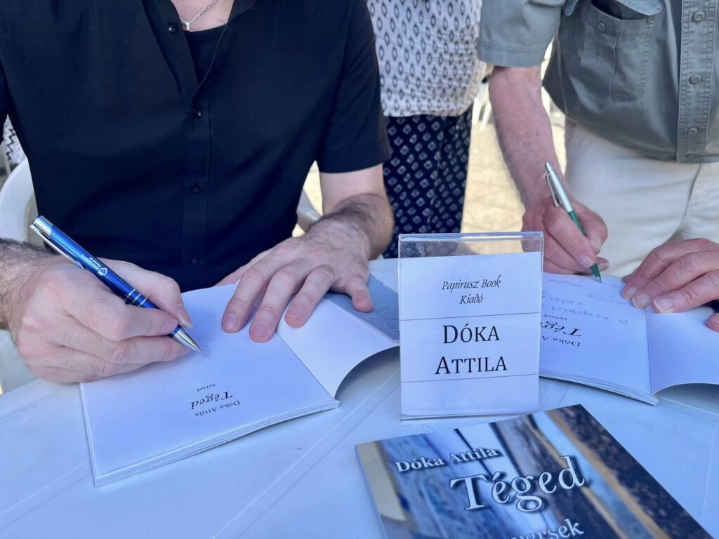 A programok sorában kiemelt figyelmet kapott Dóka Attila Téged című verseskötetének bemutatója, amely már március végétől kapható a fővárosi és vidéki könyvesboltokban, és amelynek első ünnepi eseménye a Petőfi Irodalmi Múzeumban zajlott. A kötetet most a 96. Ünnepi Könyvhét keretében is bemutatták, a Vigadó téri színpadon megrendezett rendhagyó programon Kemény András, a Papirusz Book Kiadó vezetője beszélgetett a szerzővel. A bemutatót Dóka Attila megzenésített versei tették emlékezetessé, amelyeket Orbán Borival közösen adtak elő – a dalokat Orbán Bori énekelte, Dóka Attila pedig énekhanggal és gitárkísérettel szólaltatta meg.