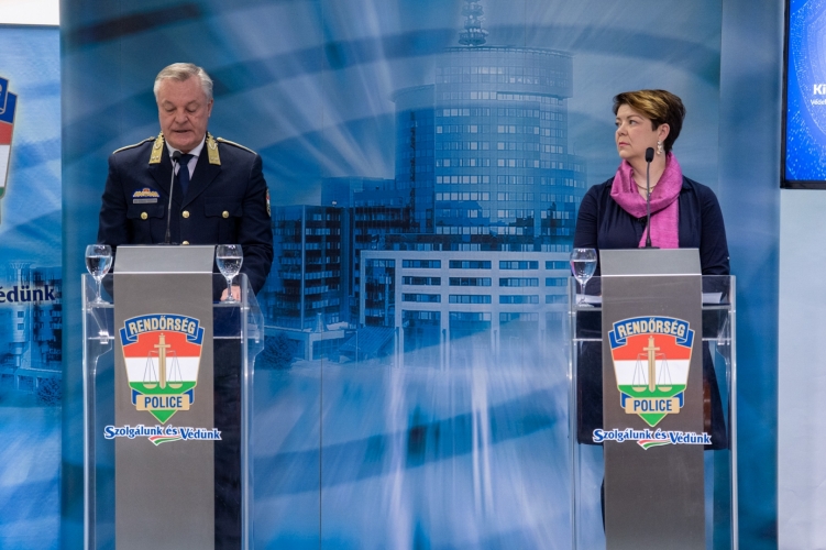 Online befektetési csalások témában és más, napjainkban gyakori visszaélésekről tartott sajtótájékoztatót Sütő Ágnes, a KiberPajzs társ-projektgazdája, a programba bekapcsolódó Befektető-védelmi Alap (Beva) ügyvezető igazgatója, dr. Töreki Sándor r. vezérőrnagy bűnügyi országos rendőrfőkapitány-helyettes, és Kardos Ferenc, a Médiaunió Alapítvány ügyvezetője 2026. március 24-én Budapesten, a Rendőrségi Igazgatási Központban.