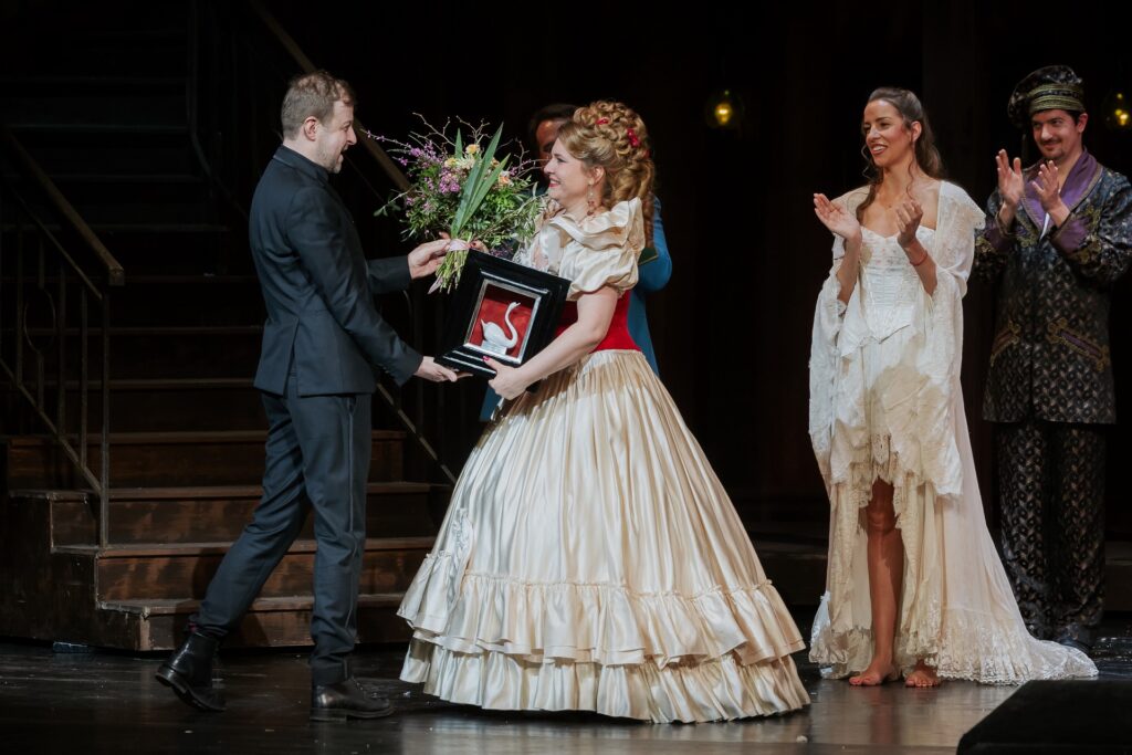A népszerű szopránt pénteken, az évad utolsó Arabella-előadását követő tapsrend alatt érte a meglepetésszerű bejelentés, hogy a következő szezonban ő lesz a Magyar Állami Operaház legnagyobb elismerésének egyik kitüntetettje. A Herendi Porcelánmanufaktúra által készített, hattyút formázó díjat Almási-Tóth András művészeti igazgató adta át a kollégák és a közönség ünneplésétől kísérve.