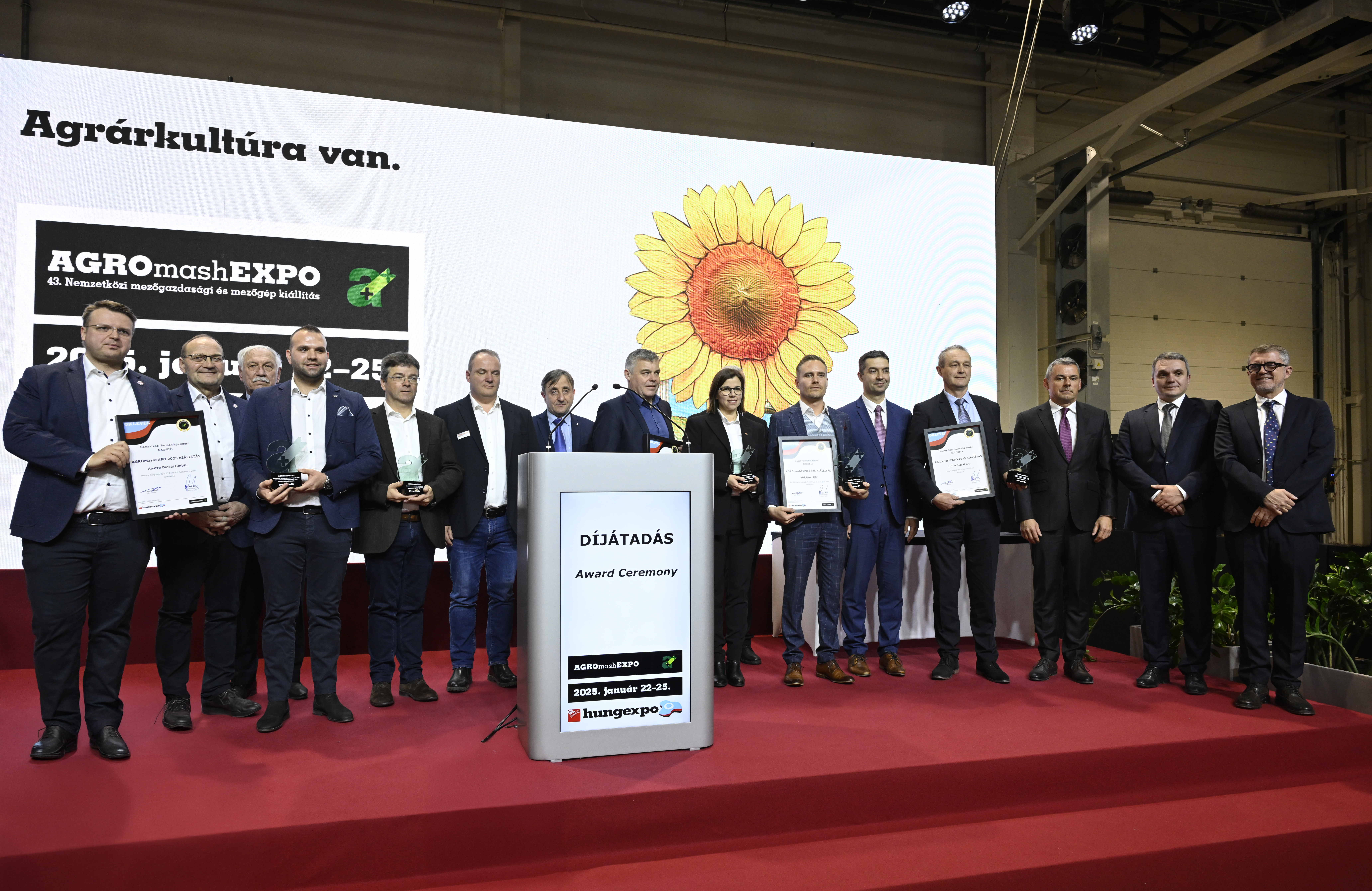 A megnyitón adták át a 2025. évi AGROmashEXPO Hazai és Nemzetközi Termékfejlesztési Díj pályázat elismeréseit, 2 pályázat nyert nagydíjat, 5 különdíjat kapott, heten pedig prémium oklevélben részesültek.