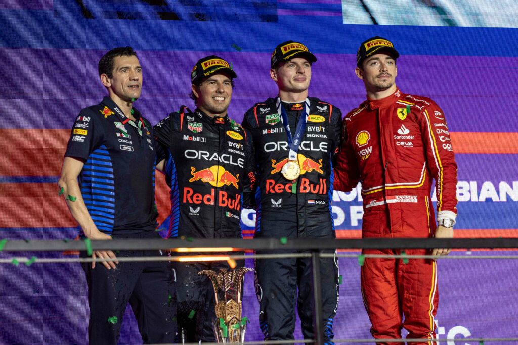 Max Verstappen zsinórban kilencedik, összességében az 56. győzelmét szerezte meg szombaton Dzsiddában. A csapatban folyó puccskísérlet ellenére kitűnően működik a Red Bull. Miközben a címvédő világbajnok elsőként ért célba, biztos vezetéssel követte csapattársát a célba Sergio Perez a második helyen. A dobogóra Charles Leclerc állhatott fel a Ferrarival és elvitte a leggyorsabb körért járó egy pontot is. A maranellói csapat eddig a második erő a mezőnyben.