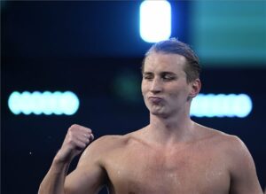 Rasovszky Kristóf a férfi 800 méteres gyorsúszás előfutama után a dohai vizes világbajnokságon 2024. február 13-án. MTI/Kovács Tamás
