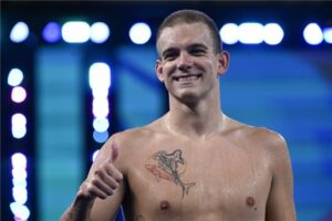 Márton Richárd a férfi 200 méteres pillangóúszás előfutama után a dohai vizes világbajnokságon 2024. február 13-án. MTI/Kovács Tamás